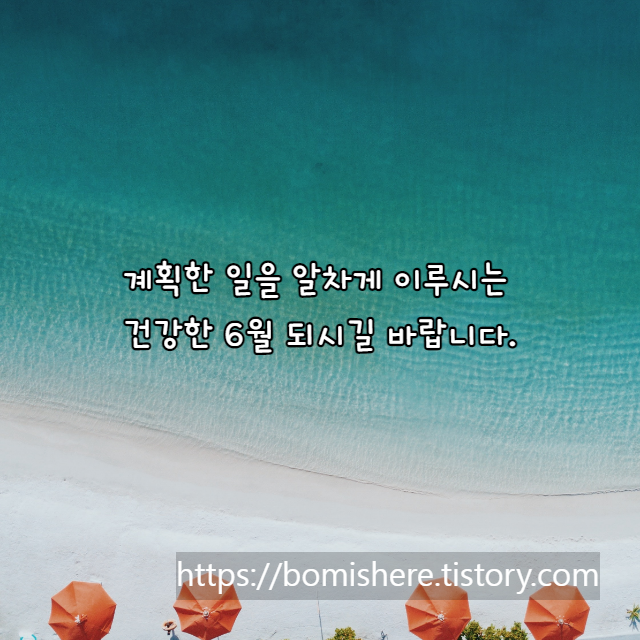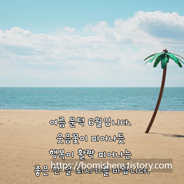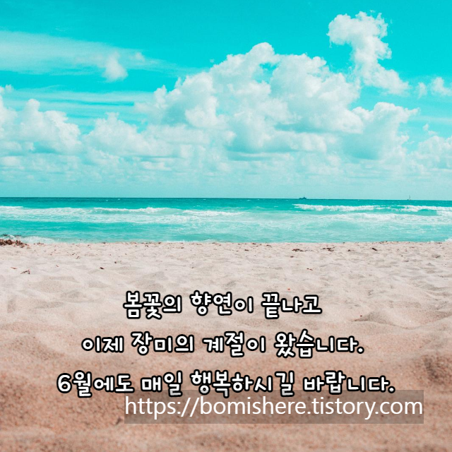 일 년의 절반이라고 할 수 있는 6월이 벌써 찾아왔습니다. 초여름이지만 벌써 때이른 더위가 찾아오려나 봅니다. 6월에도 즐겁고 행복한 마음으로 힘차게 보내시기를 바랍니다.