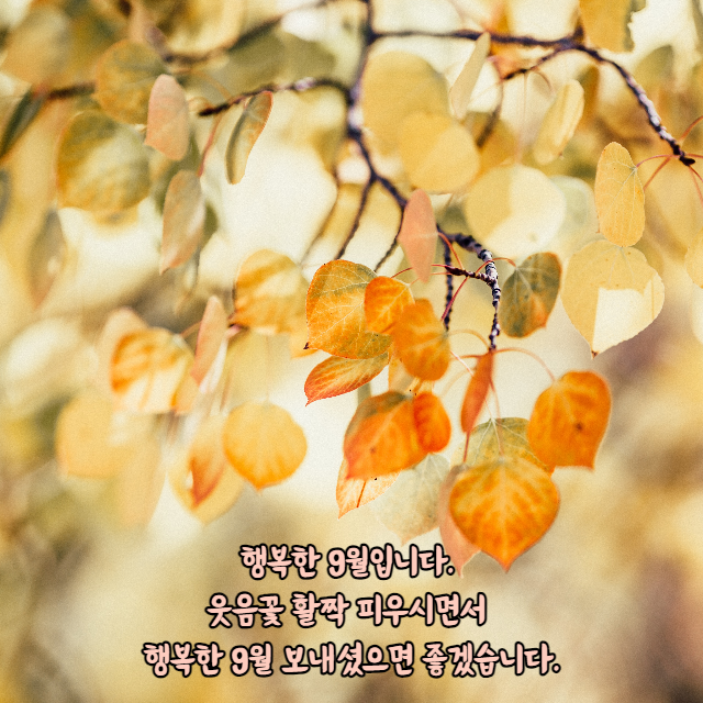 향긋한 계절, 천고마비의 계절 가을이 찾아왔습니다. 9월의 첫 날 좋은 마음으로 행복하고 멋진 하루를 보내시라는 의미로 안부 인사드립니다. 행복하고 가슴 따뜻한 하루 보내시기 바랍니다.