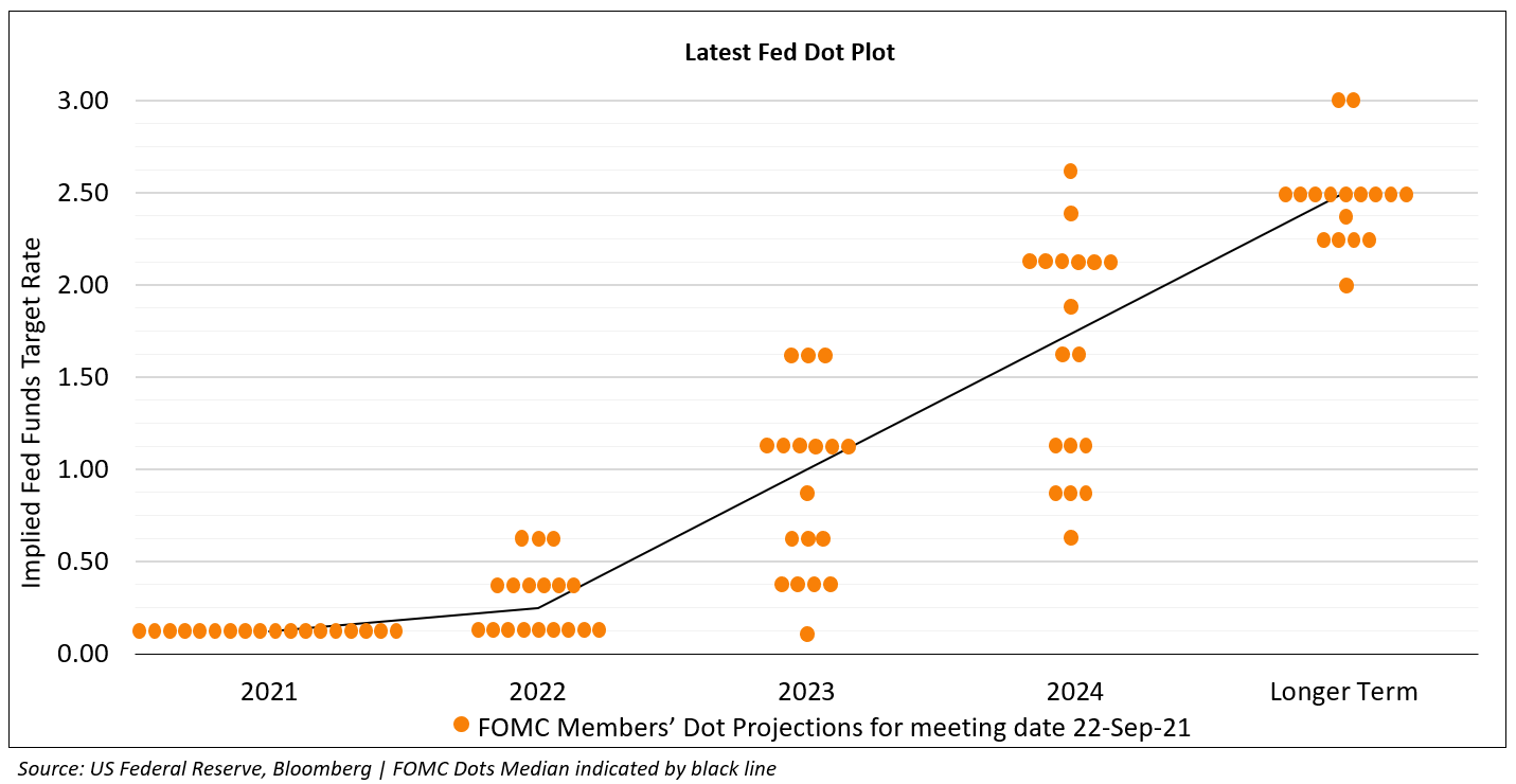 다음으로 FOMC 정책위원들이 앞으로의 추가적인 통화긴축을 어떻게 점치고 있는지를 한 눈에 볼 수 있게 한 점도표(Dot Plot)입니다. 지난 6월 15일 FOMC 회의 이후 석 달 만에 처음으로 공개하는 이번 점도표에서 FOMC 내부의 달라진 기류를 확인할 수 있을지 예상해 볼 수 있습니다.