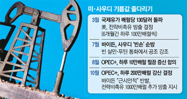 OPEC+의 두 주축은 사우디와 러시아로 이 두 나라는 최근 최근 국제유가가 급락할 기미를 보이자 이를 방어하기 위해 석유 감산에 나서고 있습니다. 미국의 잇단 금리인상에 따른 달러강세로 유가가 하락하고 있다고 보기 때문이라는 분석입니다. 특히 러시아의 우크라이나 침공으로 가뜩이나 글로벌 에너지전쟁이 불붙은 상황인데 미국과 척을 진 사우디까지 기름을 붓는 상황이 벌어진 것입니다.