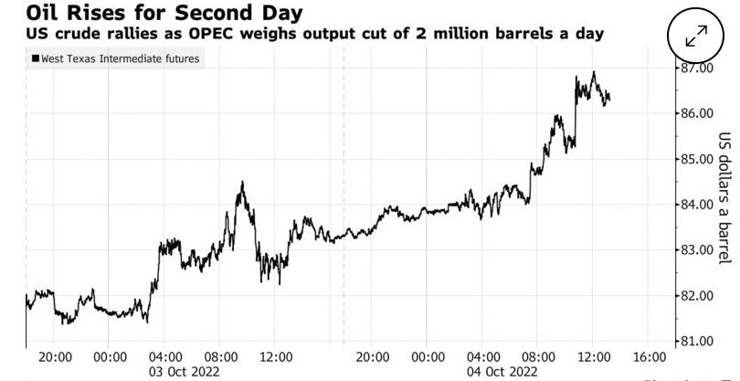 국제사회의 눈과 귀가 주목이 되었고 특히 미국은 이날 회의에 앞서 원유 감산을 강행하지 말아달라며 압박을 가하기도 했는데요, OPEC+ 회의 결과 원유 감산이 만장일치로 결정됐다고 합니다. 바이든 대통령은 11월 중간선거를 앞두고 있어 유가 상승이 부정적으로 작용할 수 있기 때문에 곤란한 상황에 빠진 셈입니다. 특히 이번 감산 결정은 사우디아라비아와 러시아가 주도하고 아랍에미리트 등이 적극적으로 찬성하면서 이뤄졌다는 소식이 들리고 있습니다. OPEC+ 회의 결과 원유 감산 관련주 (국제유가 상황)을 좀 더 자세히 알아보도록 하겠습니다. 고 보도했습니다.