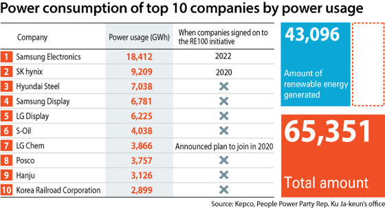 100% 재생에너지 전기를 쓰고 싶어도, 우리나라에서는 재생에너지로 만든 전기 자체가 턱없이 부족하기 때문인데요, 예를 들어 작년의 경우 삼성전자가 18.4테라와트시를 썼는데, 이 중 재생에너지는 고작 2.7%인 0.5테라와트시에 불과합니다. 2050년까지 이것을 100%로 끌어올려야 한다는 얘긴데 쓰고 싶어도 쓸 재생에너지가 없다는 것입니다.