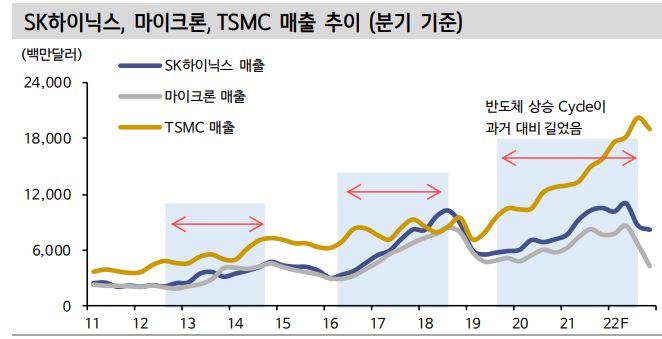 SK하이닉스에 따르면 메모리반도체 시장 불황은 내년 상반기까지 당분간 지속될 것이라고 하는데요, 증권가에서도 미국의 반도체 공급망 이슈와 더불어 거시적인 이슈(글로벌 경기 침체에 따른 소비재 수요 위축 등)가 반도체 산업의 경영환경 전반에 영향을 미칠 것으로 예상하면서 공급이 수요를 초과하는 상황이 당분간 지속할 것으로 보고 있습니다.