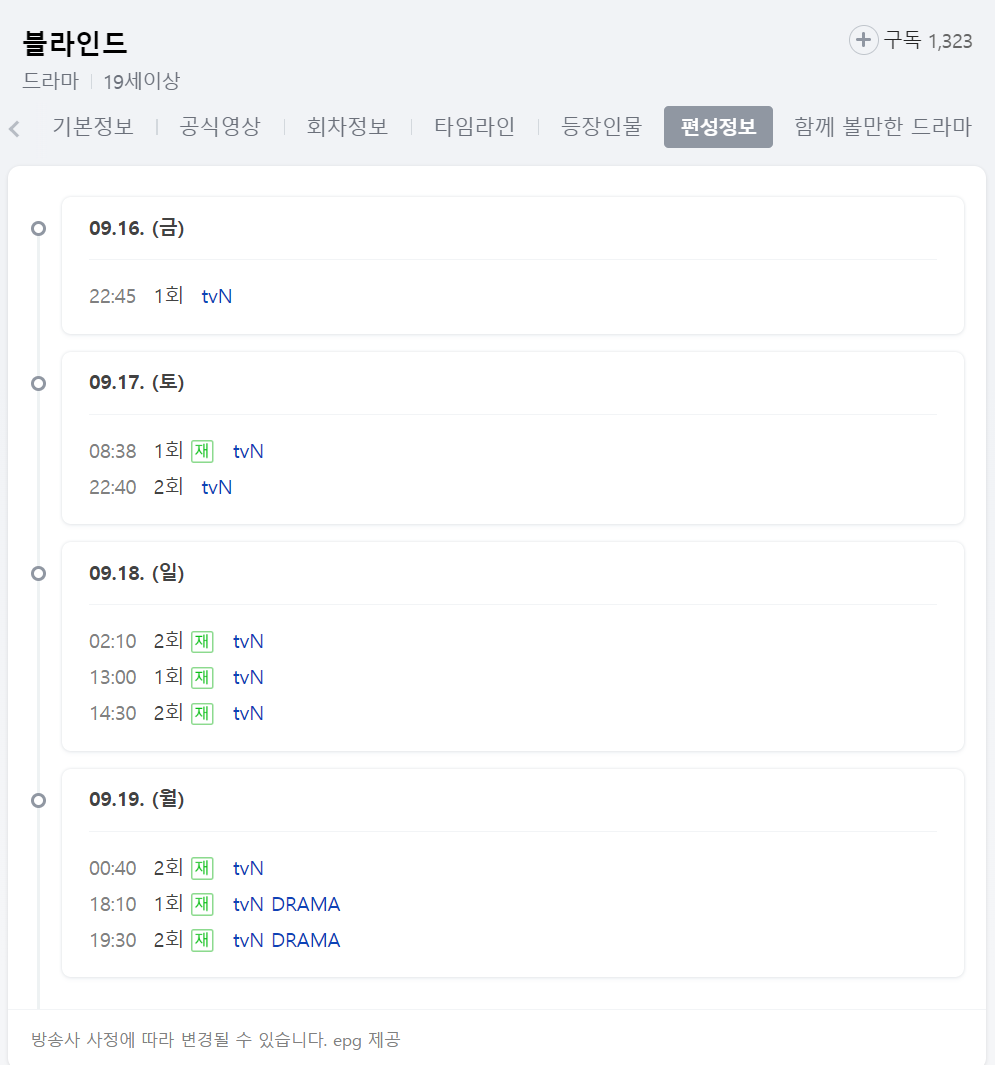 블라인드 드라마 재방송