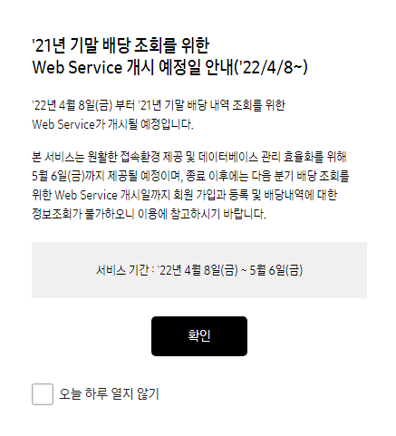 또한 삼성전자는 따로 배당조회 기능도 제공하는데 보통 배당지급일 1주일 전부터 배당지급일 이후 3주간, 총 4주동안 서비스가 열리니 삼성전자 배당급 지급일과 더불어 참고하시기 바랍니다.
