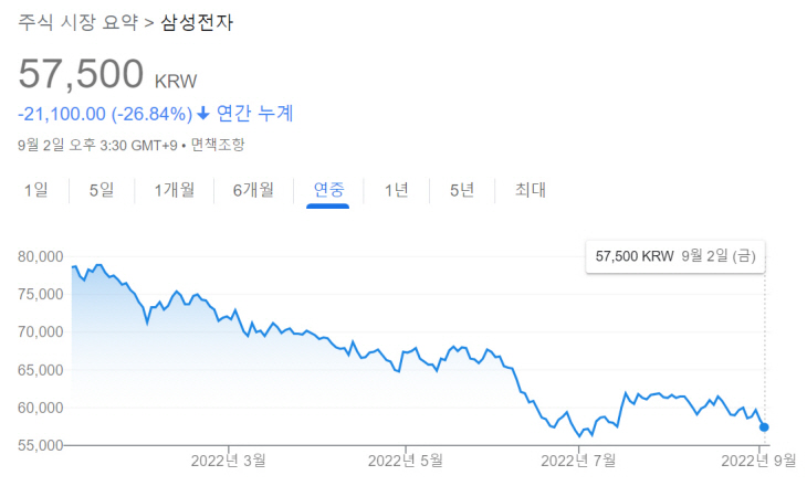 그러던 중 7월 한 달 동안에만 9.25% 상승해 6만원대를 회복하기도 했지만 최근 미국 소비자물가지수(CPI) 충격 여파로 증시가 휘청이면서 삼성전자 주가 역시 급락하게 되었는데요, 지난해만 해도 10만전자 가능성이 거론될 정도로 주가 흐름이 좋았던 삼성전자는 올해 변동성 큰 장세 상황에서 마땅한 상승 모멘텀을 찾지 못하고 있습니다.