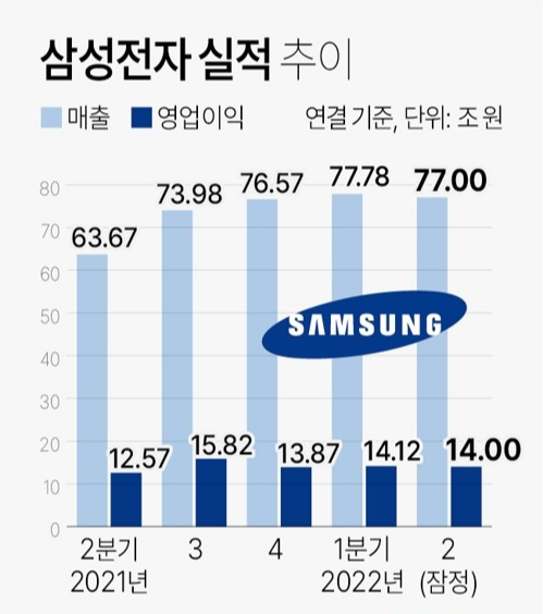 결론적으로 현재 삼성전자 주가전망은 밝지 못한 편입니다. 먼저 올해 3분기 예상되는 삼성전자 매출은 79조 8000억 원, 영업이익 11조 8000억 원인데 매출은 전분기 대비 3.3% 늘었지만 영업이익은 전분기와 대비하여 16% 떨어지는 겁니다.