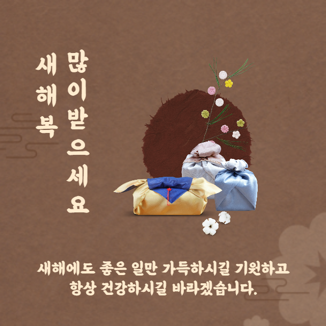 계묘년 새해 인사 전합니다. 올 한해도 하시는 일마다 날로 번창하고 뜻하신 모든 소원들이 모두 다 성취되시길 빕니다. 새해 복 많이 받으세요.